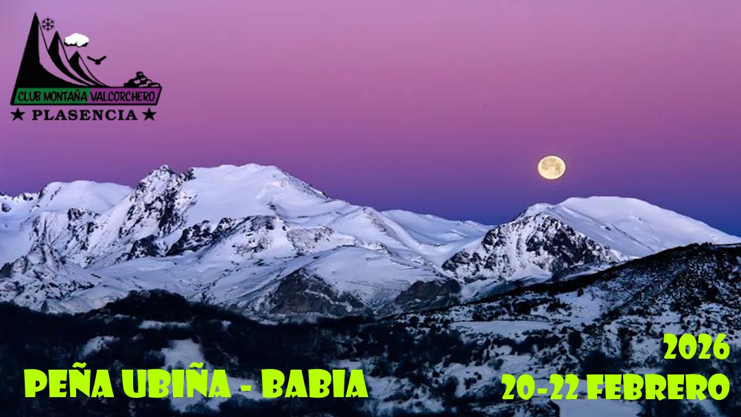 Lugar: Parque de los Pinos (Plasencia) Hora: 15:30 Zona: León - Babia - Asturias - Ubiña Programa: ALPINISMO INVERNAL DE ALTA MONTAÑA EN LA ZONA DE BABIA - PEÑA UBIÑA 20/02 Viaje de ida 21/02 Travesía Peña Ubiña 22/02 Ruta Mortihuero y Laguna de las Verdes + viaje de vuelta Dificultad: Nivel: 3 (alta) - No se tramitan seguros para esta ruta +info niveles |