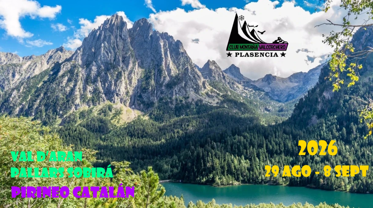 Lugar: Parque de los Pinos (Plasencia) Hora: 6:00 Zona: Pirineos - Lerida - Vall de Aran - Pallars Sobirá Programa: RUTAS DE SENDERISMO, MEDIA Y ALTA MONTAÑA EN EL PIRINEO CATALÁN: VALL DE ARAN Y PALLARS SOBIRÁ 29/08 VIAJE DE IDA 30/08 Ruta01 Lagos del Circo Colomers 31/08 Ruta02 Bosque Gerda 01/09 Ruta03 Lac Redon 02/09 Día Libre (Vielha) 03/09 Ruta05 Valle Gerber o Travesía01 Valle Gerber - Ref Amitges 04/09 Ruta06 Estanys de Baciver o Travesía02 Ref Amitges - Ref Estany Llong 05/09 Ruta07 Refugio JM Blanc o Travesía03 Ref Estany Llong - Ref JM Blanc 06/09 Ruta08 Estany Sant Maurici o Travesía04 Ref JM Blanc - Espot 07/09 Ruta09 Pueblos Pallars Sobirá 08/09 VIAJE DE VUELTA Dificultad: Nivel: 2 (media) +info niveles |